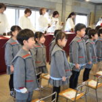 最後にハンドベルの演奏に合わせ、みんなで「にじの向こうに」を歌いました。普段のピアノ伴奏の時の元気な声とは違い、優しく歌っていました。子ども達なりに考え、ハンドベルの音色に合わせたのかなと思いました。