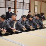 いつもと違う和室の雰囲気に少し緊張しながらも、今まで言われたことをしっかり思い出しながら、一生懸命取り組もうとする気持ちがひしひしと伝わってきました。おうちの方も子ども達の気持ちにこたえるように、お作法をしっかりと覚えていただき、とても丁寧にお茶を味わってくださいました。