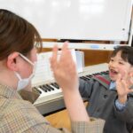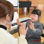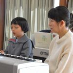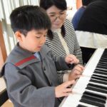 年中組のリトミックの時から、様々なリズムや表現方法に触れ、楽しく学んできました。年長組になってリトミックでの学びが、ピアノを弾く形へと繋がっていくことが楽しかったようで、ピアノ教室以外の時間でもピアノに触れるお友達が増え、「先生、見てて」「聞いててね」と嬉しそうに曲を弾いてきかせてくれていました。今日は一番見ていて欲しい人に一番近くで見守られながら、練習の成果を発揮できましたね。「楽しかったなぁ」という言葉と満足そうな表情がとても印象的でした。