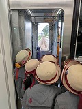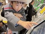 いよいよ乗車です。電車内でもたくさんの所に様々な表示があります。優先席に気付く子、吊り革に気付く子、乗車口の床に点字ブロックを見つける子、景色を楽しむ子、景色を見ながら踏切を数える子とそれぞれがたくさんのことを感じながらの乗車になりました。