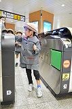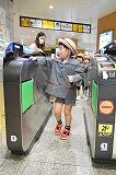 購入した切符で自動改札を通ります。ここでも切符に変化がないか目を光らせる子どもたち。すかさず「穴開いた!」と穴をのぞいたり、穴をなでたりと変化を楽しんでいました。