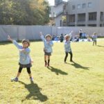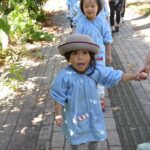 楽しく遊んだ後は帰園です。帰り道にバスを見かけると「これに乗ったら幼稚園に帰れる?」なんて声も聞こえましたが、頑張ってみんなで歩いて帰りました。途中眠くなってしまい半目になってしまったり、目をつぶってしまったりする子もいましたが、幼稚園が見えると笑顔になり、全員で最後まで歩ききることが出来ました。