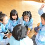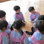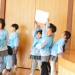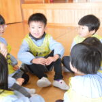 話し合いの場では率先して話を進めてくれ、ゲームの移動では年少組が迷子にならないように手を繋ぎ、人数確認をし…改めてゆり組さんの頼もしさを感じました。また年少・年中組も、ゆり組さんに付いて行こうと一生懸命取り組む姿が見られ、ゲームを通しどんどん団結していったように感じました。