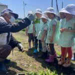 「先生!見て!」「おっきい!」「おもいっ!」「ちっちゃくて赤ちゃん芋」「ひょろひょろー」と嬉しそうに次から次へと掘れたお芋を披露してくれました。収穫の喜びは十分に、お芋には様々な大きさや形があること、お芋が繋がっていることも自然と理解することができました。また「手伝って」の声も多く聞かれお芋掘りの大変さも身をもって感じることができましたね。